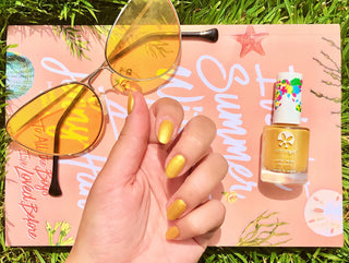 Suncoatgirl kids nail polish replaces all the chemical solvents with water. It is made with up to 70% water, and is free of toluene, formaldehyde, parabens, acetates, alcohol & acetone.