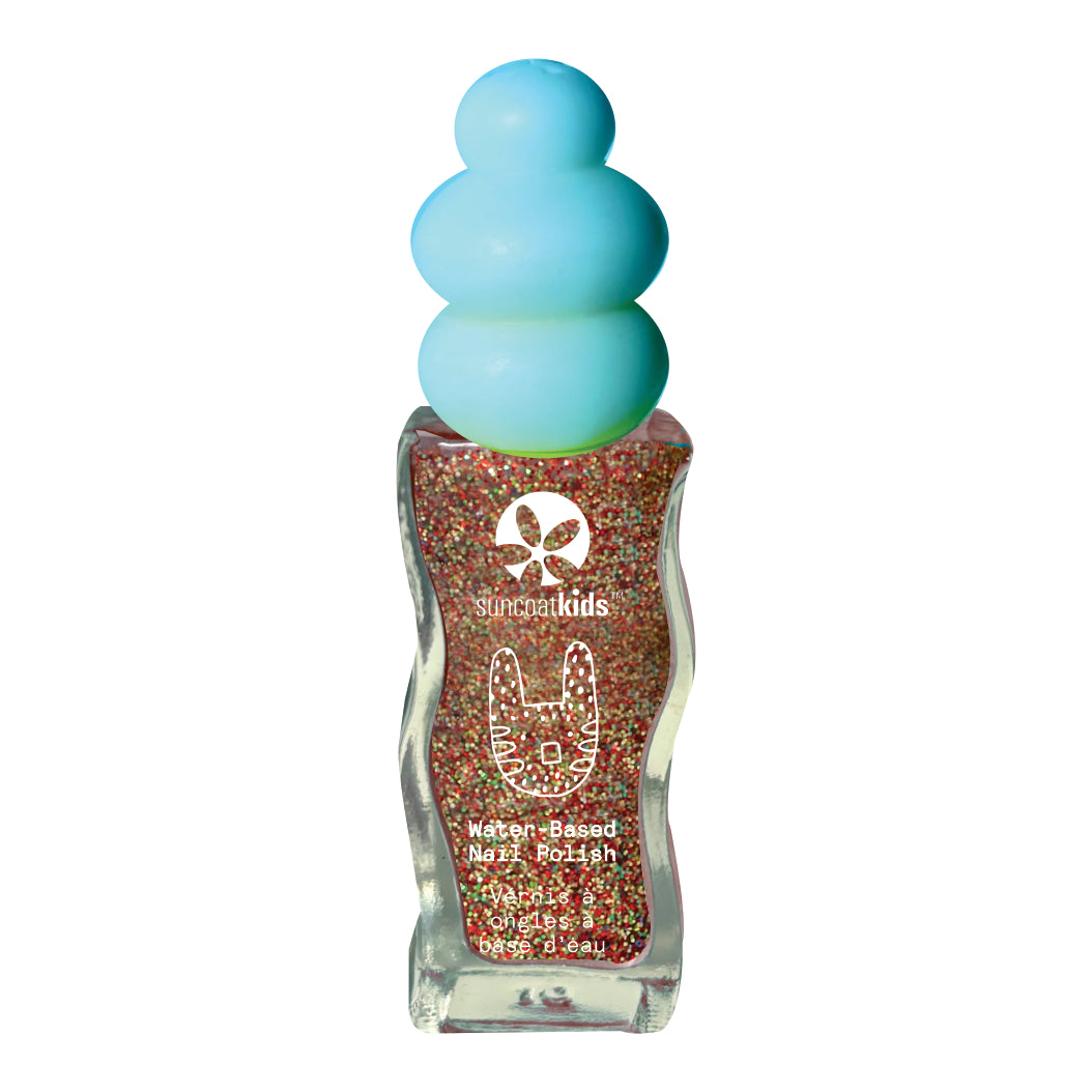 This party ready nail polish is bursting with tiny specks of red, green & gold glitters.