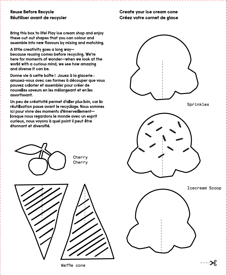 - Reuse Before Recycle. Bonus activities inside the box: Colour & create your own ice cream cone